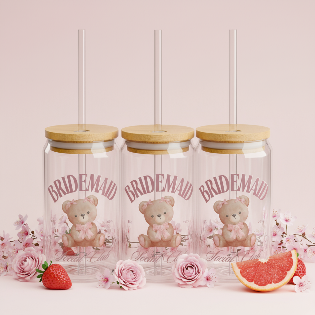 Copy of Custom Event Sipper Glass, 16oz | Personalized Drinkware, Cute Teddy Bear, Baby Shower Gift, Party Favor, Kids Birthday Celebration