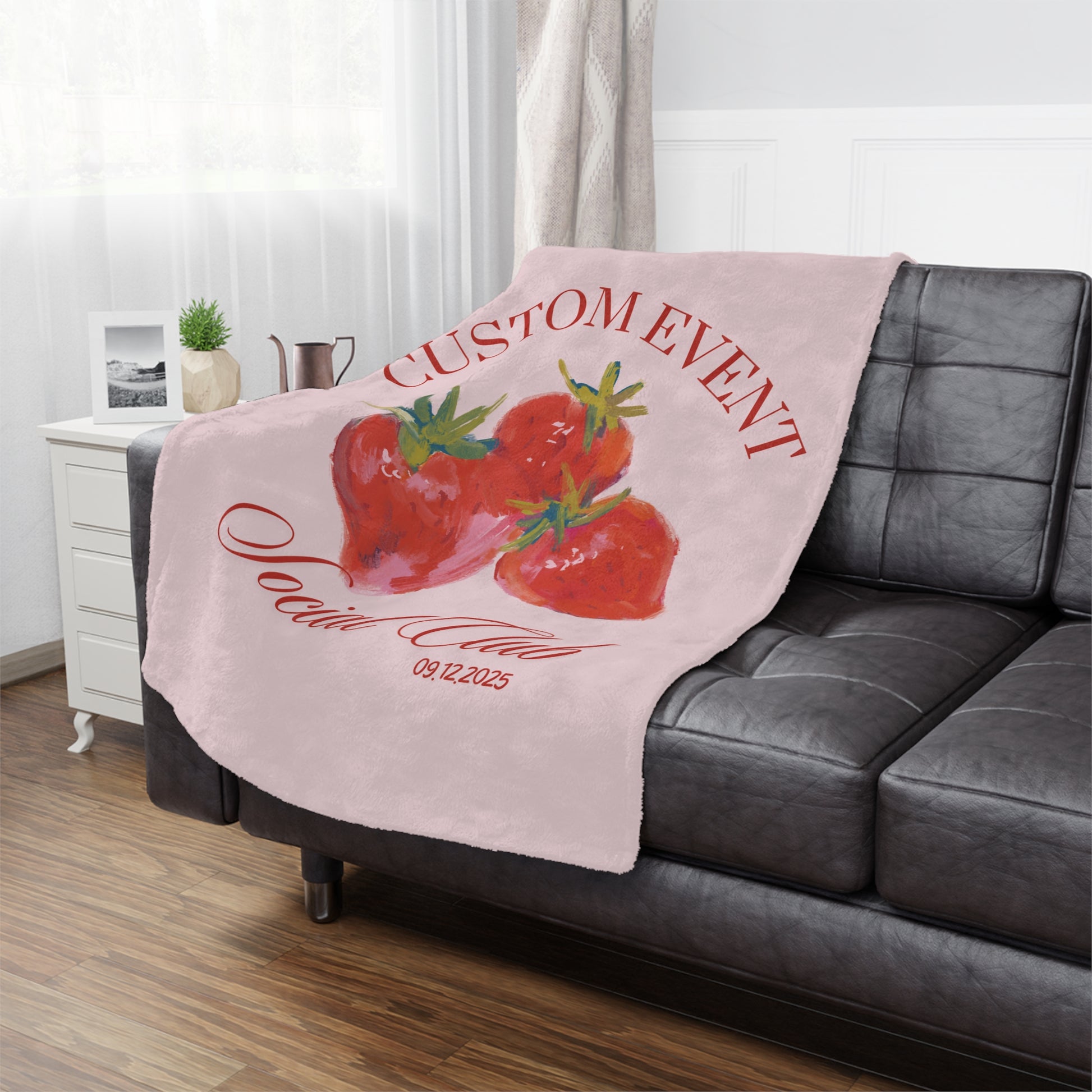 This strawberry custom name city event blanket is the perfect holiday gift. It provides a cozy and warm feeling, perfect for snuggling up on the couch during the winter season. Ideal for those who love personalized gifts and enjoy adding a touch of uniqueness to their home decor. Relevant for birthdays, Christmas, Valentine's Day, and other special occasions.